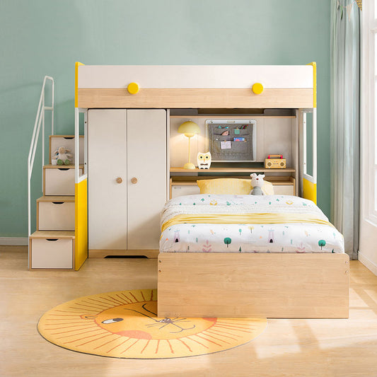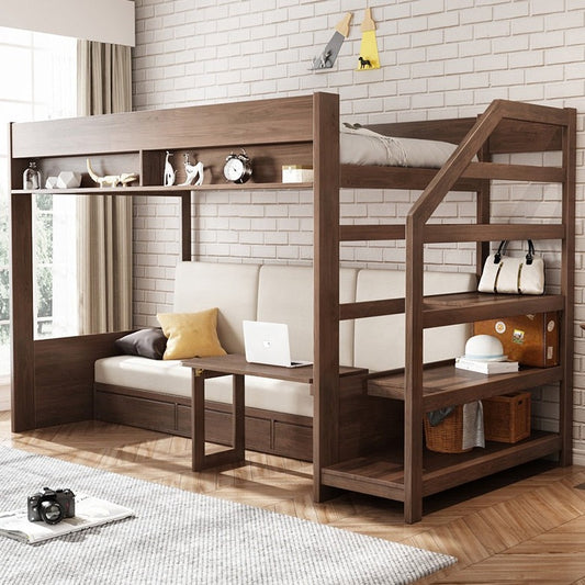 سرير بطابقين مع درج ووحدات تخزين