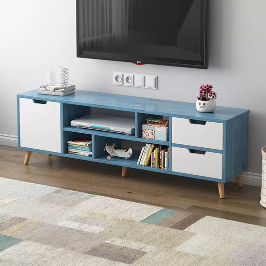 طاولة تلفاز بأرجل خشبي بارفف و ادرج