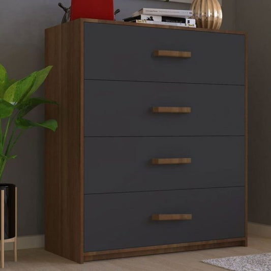 دولاب اسود مفتوح بادرج و ارفف مع علاقة ملابس