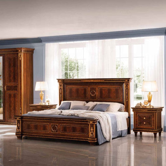 غرفة نوم ملكي مكونه من سرير و دولاب و تسريحه مع 2 كومودينة