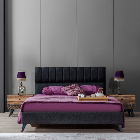 سرير كابتونية من القماش السابيا و خشب الطبيعي