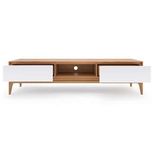 طاولة تلفاز ب 2 ادرج ابيض في خشبي