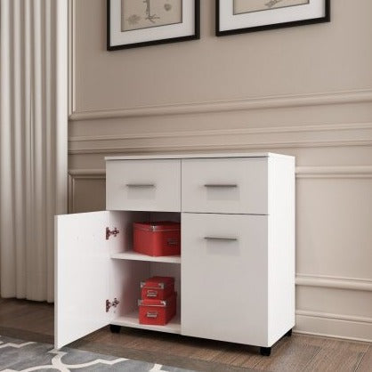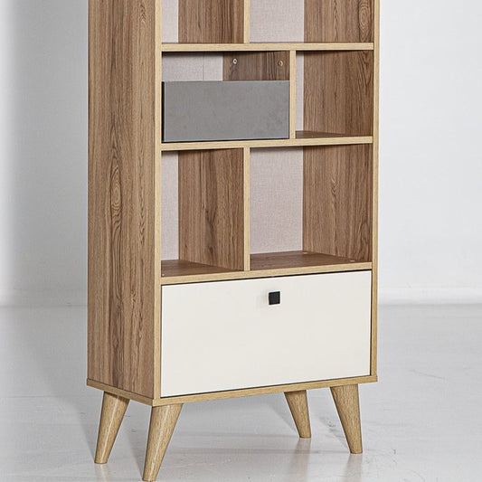 وحدة تخزين مكون من 4 أرفف مقسمين و درج مغلق كبير .