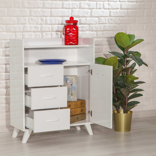 وحدة تخزين مكونة من رفين مفتوحين و ضلفة مغلقة و 3 ادراج