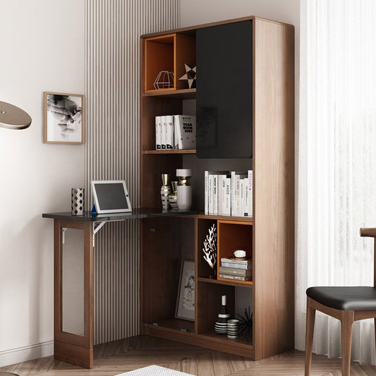 وحدة تخزين كتب خشبي متعدد الارفف مع مكتب بسيط