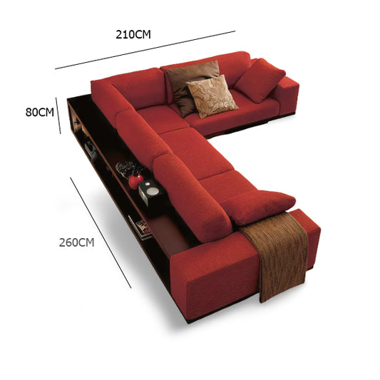 كنبة حرف L تحتوي وحدة أرفف خلفية