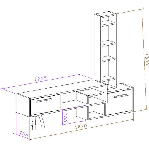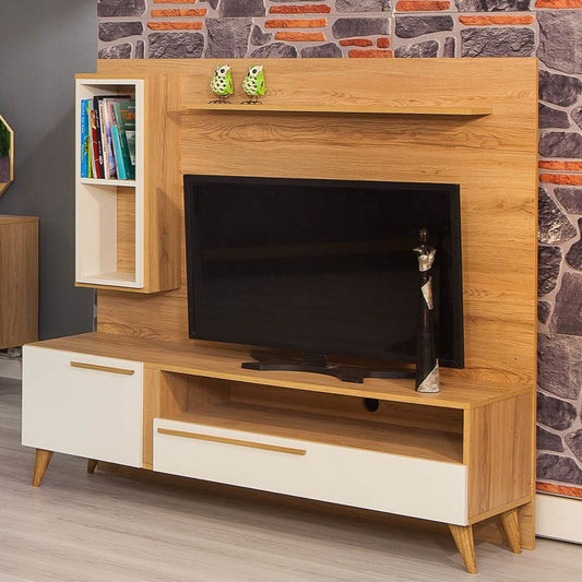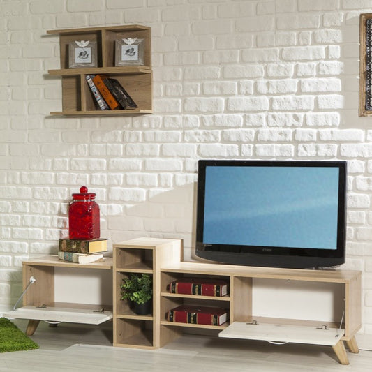 طاولة تلفاز مكونه من ارفف و ادرج مع ارفف حائط ديكور