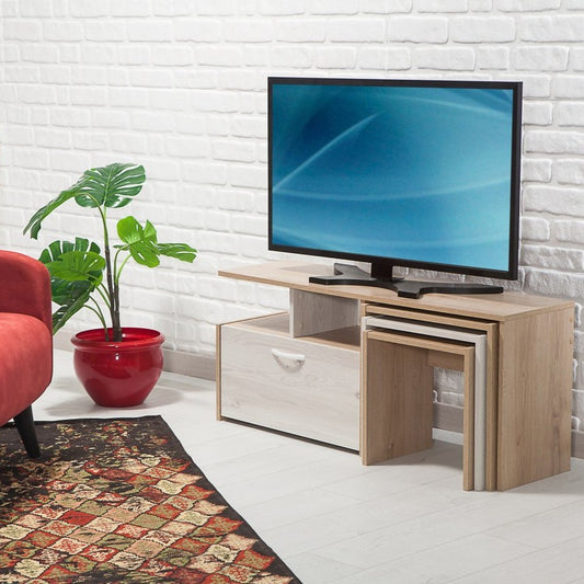 طاولة تلفاز مع طاولات متداخله و وحدة تخزين