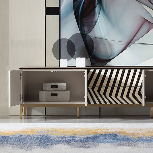 طاولة تلفاز ابيض بتصميم كلاسيكي