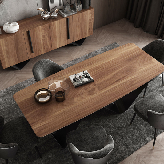 طاولة طعام خشب وأرجل معدنية
