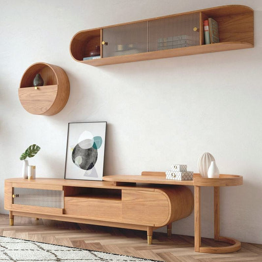 طاولة تلفاز مع خزينة جانبية و ارفف معلقه