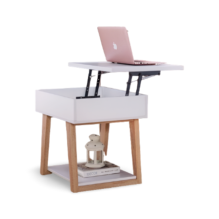 طاولة جانبية مزودة برفين و قابلة للاستخدام بشكل رأسي او افقي