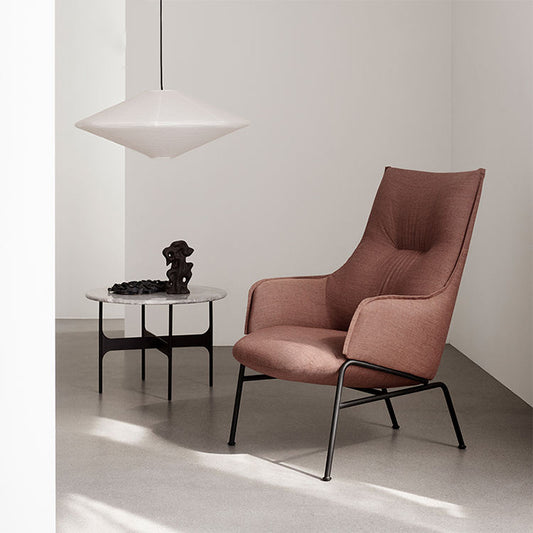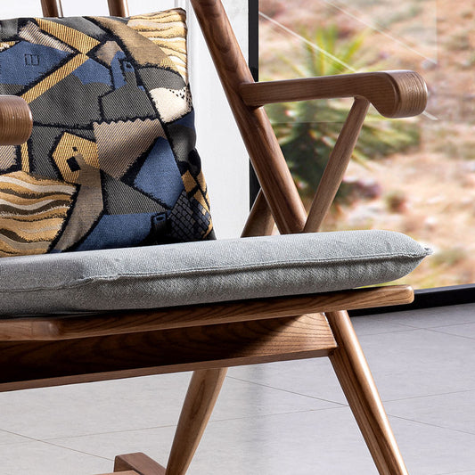 كرسي بارجل خشبي اسود مغطي بقماش فاخر