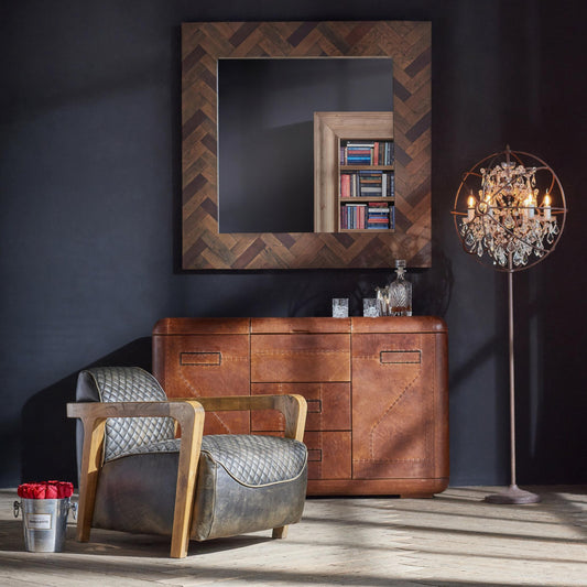 كرسي عتيق من الخشب الصلب والجلد الفاخر