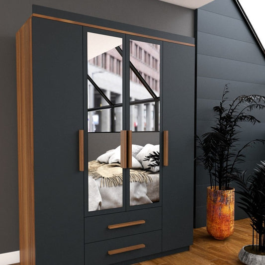 دولاب مكون من علاقة ملابس + درج + 3 أرفف سفلية من جهة و مرايا و درج + رف من جهة