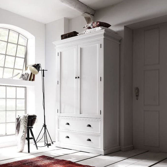 دولاب ابيض من ارفف و ادرج بعلاقة ملابس
