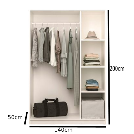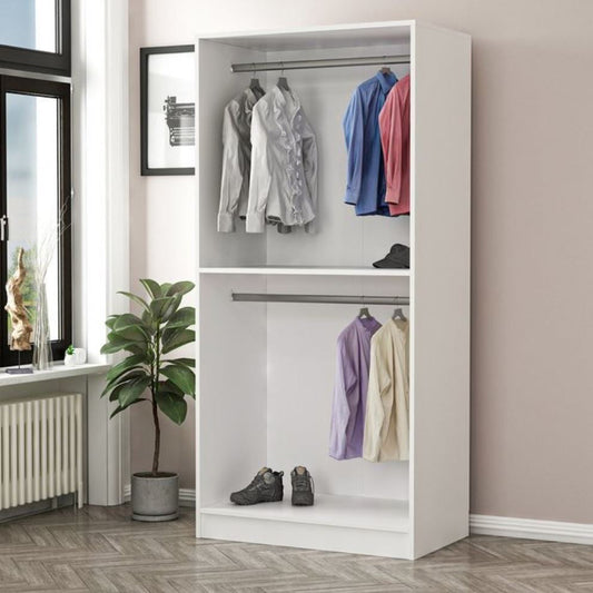 دولاب أبيض ب 4 أرفف و علاقة ملابس مفتوحه