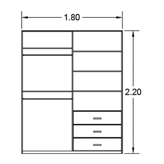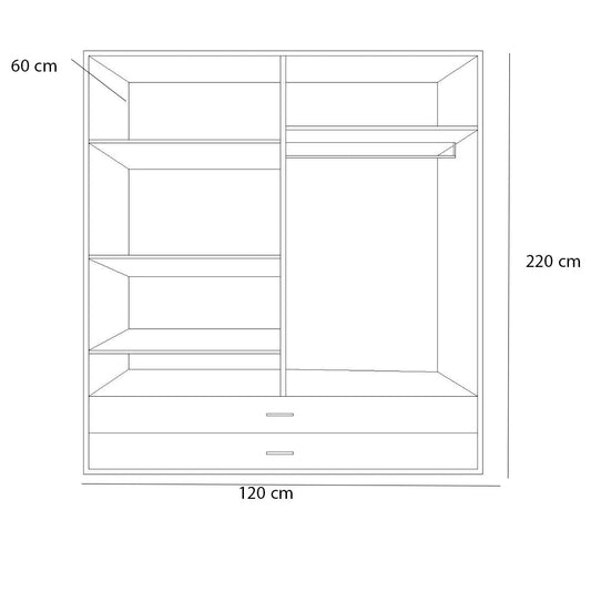 دولاب ب 2 باب جرار اربع أرفف مع درجين والاخرى تحتوي على رف وعلاقة ملابس