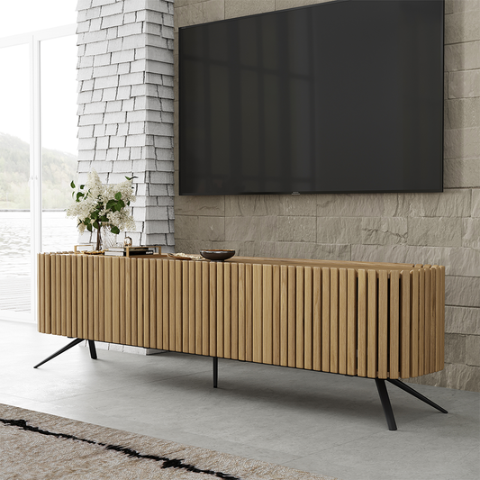 طاولة تلفاز خشبية بمساحة تخزين