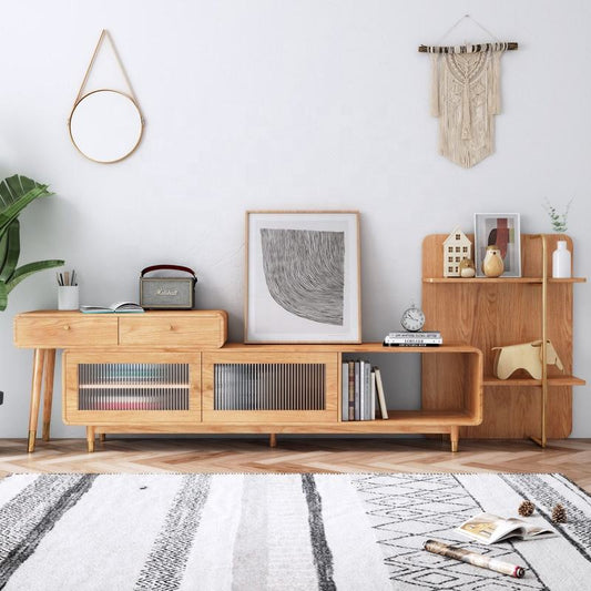 طاولة تلفاز بادرج و ارفف متعددة الاستخدام