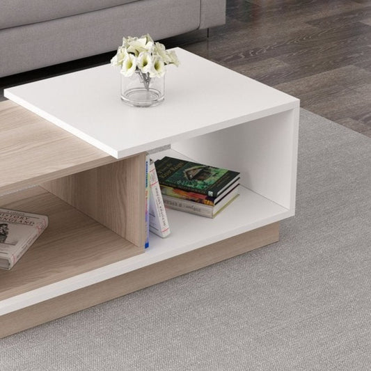 طاولة قهوة مزودة برف داخلي كبير بعرض الطاولة