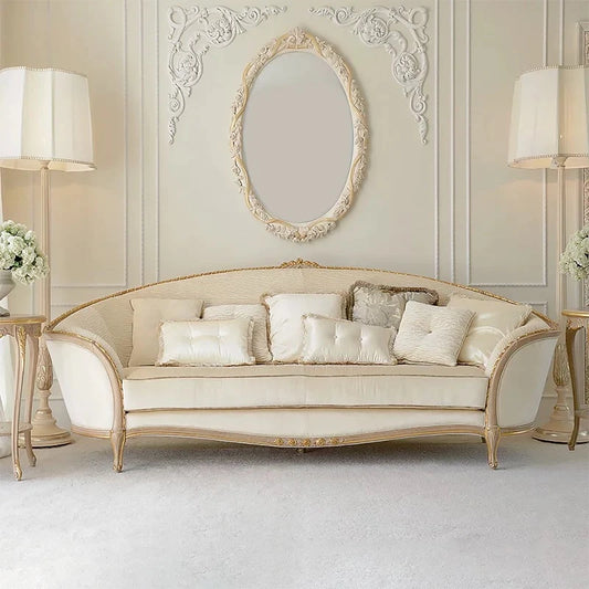 طقم كنب من خشب باللون الابيض الداكن