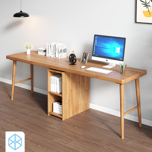 مكتب كمبيوتر خشبي بخزانة مبتكرة