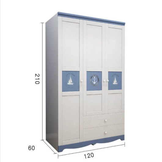 دولاب الأطفال الخشبي بثلاث أبواب يتميز بتصميم عصري وألوان جميلة (وردي، رمادي، أزرق). مصنوع من خشب طبيعي عالي الجودة، مساحته الكبيرة توفر تخزين فعّال لملابس وأغراض الأطفال، مثالي لتنظيم غرفتهم.