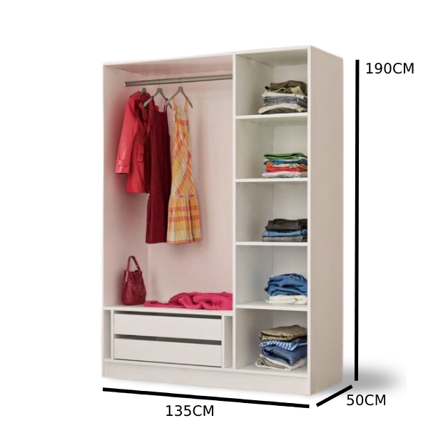 المقاس : العرض 135سم * العمق 50سم * الإرتفاع 190سم