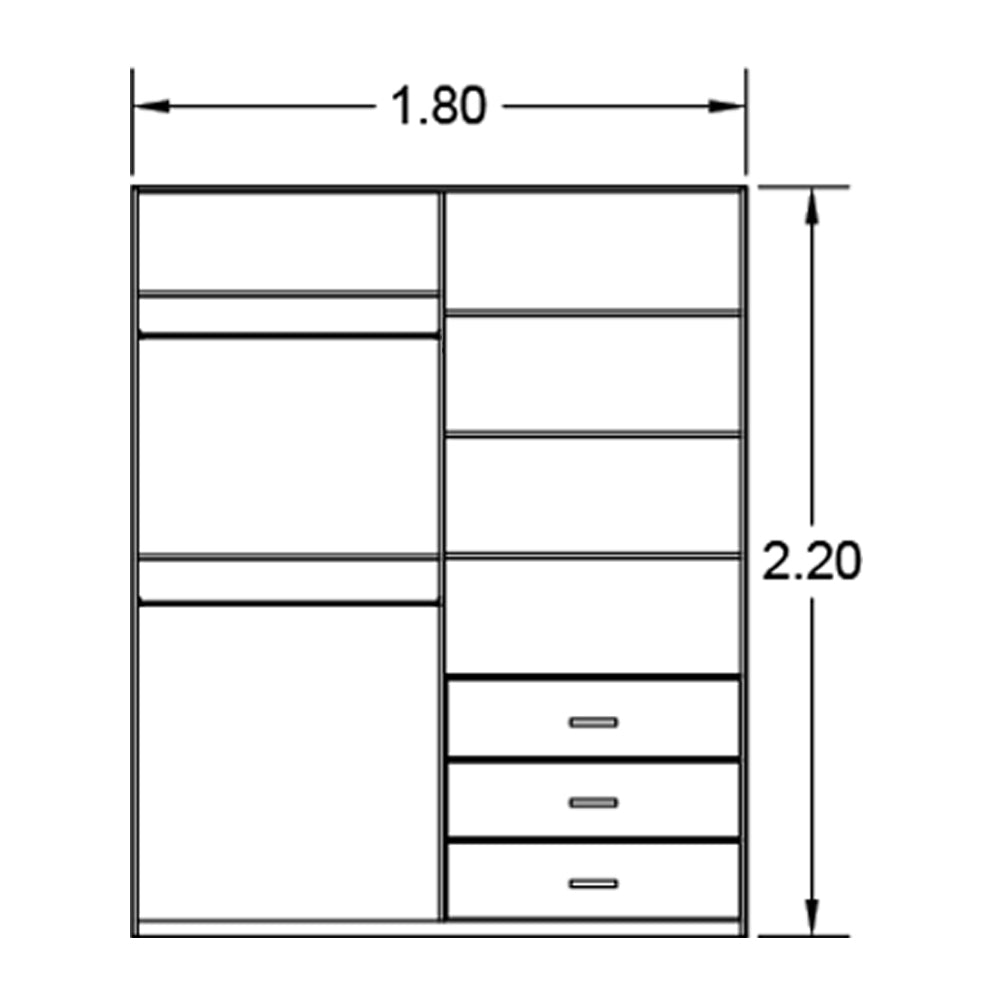 المقاسالعرض 180سم * العمق 50سم * الإرتفاع 220سم
