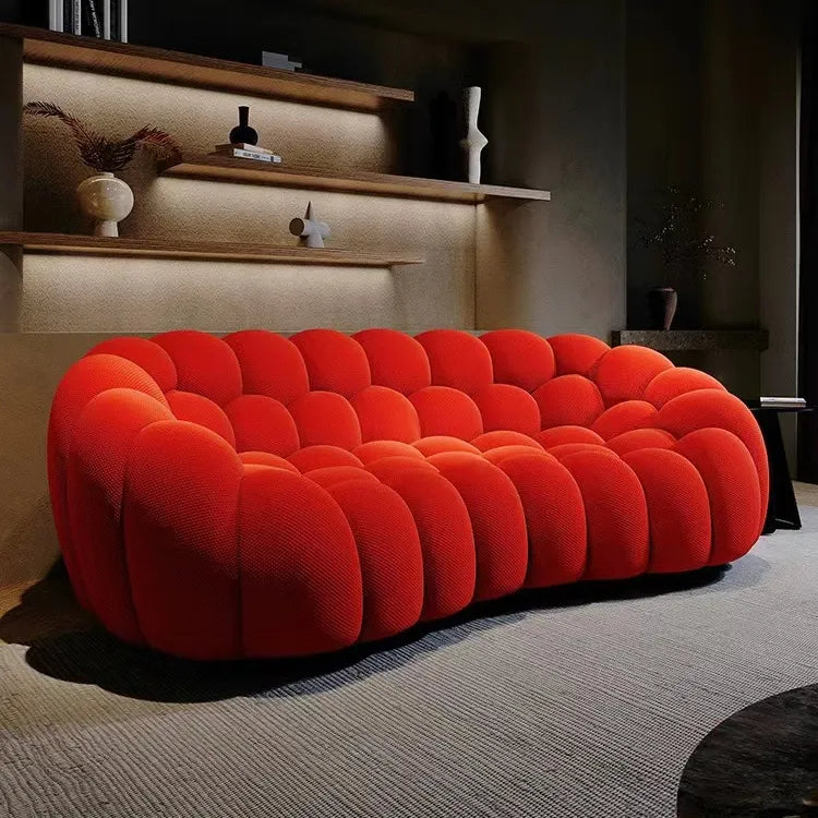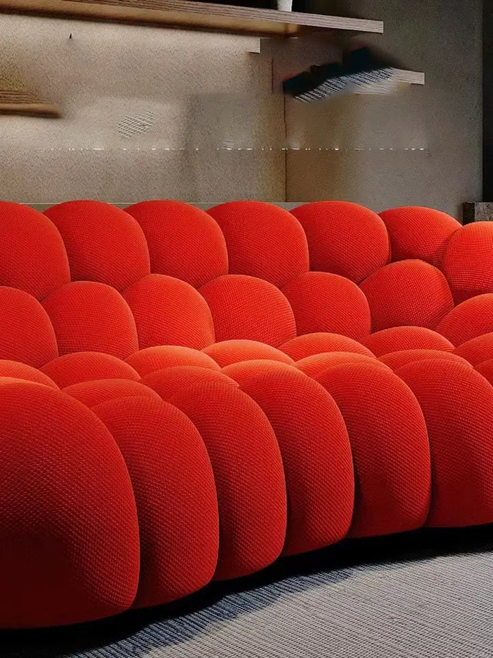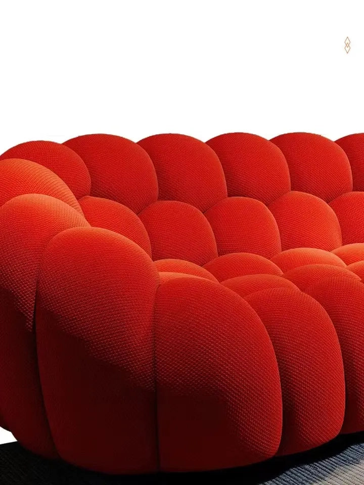 صوفا أنيقة بتصميم مودرن جذاب، مصنوعة من قماش البوكليه الناعم باللون الأحمر الجريء. توفر مزيجاً من الراحة والفخامة، مع هيكل قوي من الخشب الطبيعي وخشب الزان. تضفي لمسة عصرية وحيوية على أي غرفة معيشة.