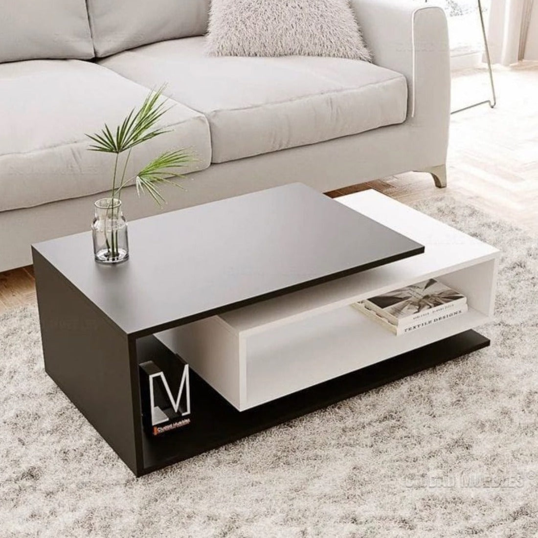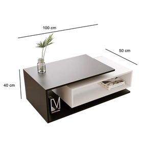 تتميز طاولة القهوة العصرية بتصميم جذاب وعصري يجمع بين اللونين الأسود والأبيض بطريقة جميلة ومتناسقة. تأتي الطاولة بمقاس مميز، مما يجعلها مناسبة للاستخدام كطاولة قهوة في غرف المعيشة أو غرف النوم أو أي مساحة داخلية أخرى.