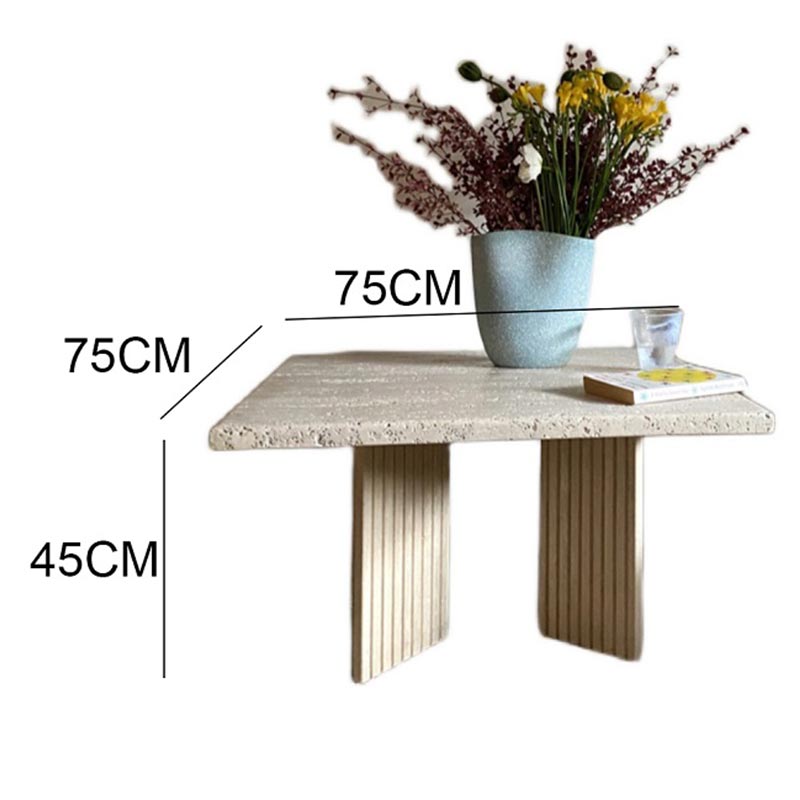 تتميز طاولة القهوة بتصميمها البسيط العصري، حيث تأتي بلون بيج يتناسب مع أي ديكور داخلي. تبلغ أبعاد الطاولة العرض 75 سم والعمق 75 سم والارتفاع 45 سم، مما يجعلها مناسبة للاستخدام في المساحات الصغيرة والضيقة. تم صنع الطاولة من خشب الزان عالي الجودة وبديل الرخام، مما يجعلها متينة وقوية. يمكن استخدامها لتناول القهوة والشاي والوجبات الخفيفة بطريقة أنيقة ومريحة، كما يضيف شكلها الجميل لمسة جمالية على أي مكان توضع فيه.