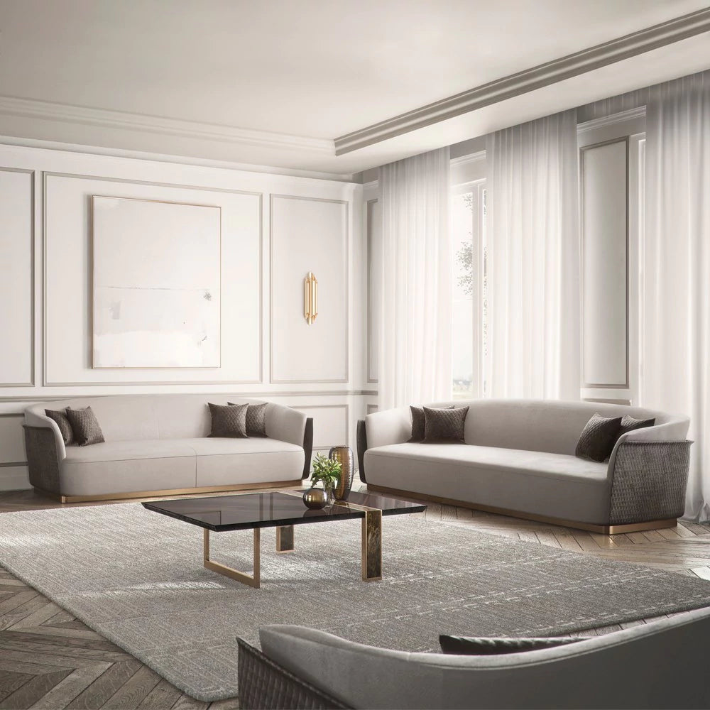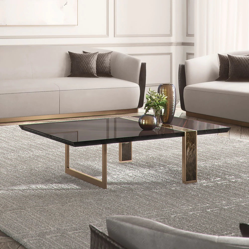 طاولة قهوة بتصميم راقٍ ومميز تجمع بين اللونين الذهبي والبني لإضفاء لمسة من الفخامة على أي غرفة معيشة. مصنوعة من خشب طبيعي عالي الجودة مع تفاصيل ستاليستيل قوية، مما يضمن متانة وجمال التصميم. تأتي بأبعاد 40 سم ارتفاعًا، 150 سم عرضًا، و90 سم عمقًا، مما يجعلها مثالية لتلبية احتياجاتك العملية مع إضافة لمسة أنيقة. تصميمها العصري والفخم يجعلها قطعة مركزية تبرز في المساحة وتكمل ديكور الغرفة.