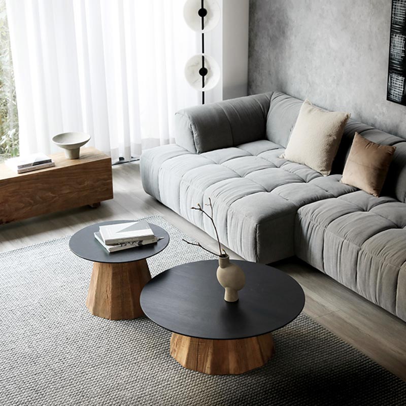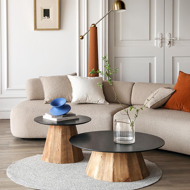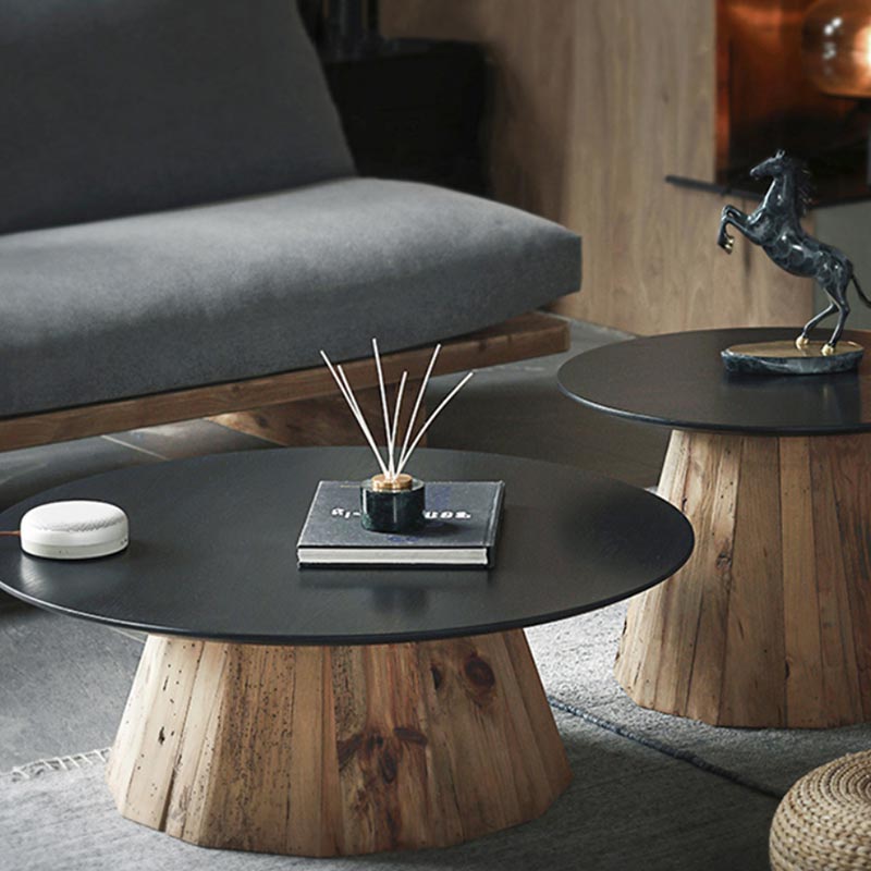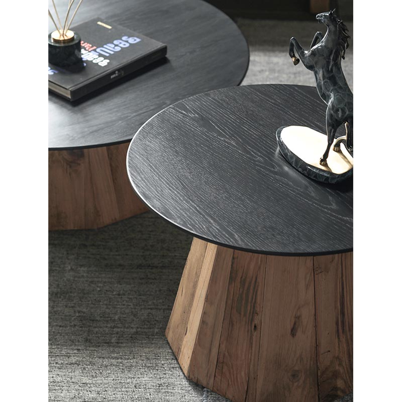 إن طاولة القهوة هذه عصرية ومصنوعة من الخشب الطبيعي بلون أسود خشبي أنيق. تأتي بمقاسين مختلفين؛ الأول بقطر 60 سم والثاني بقطر 90 سم، وكلتاهما تتميز بتصميم فريد وعملي. تعد هذه الطاولة خيارًا رائعًا لتزيين غرفة المعيشة أو غرفة الجلوس.
