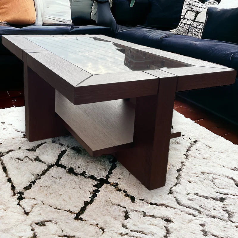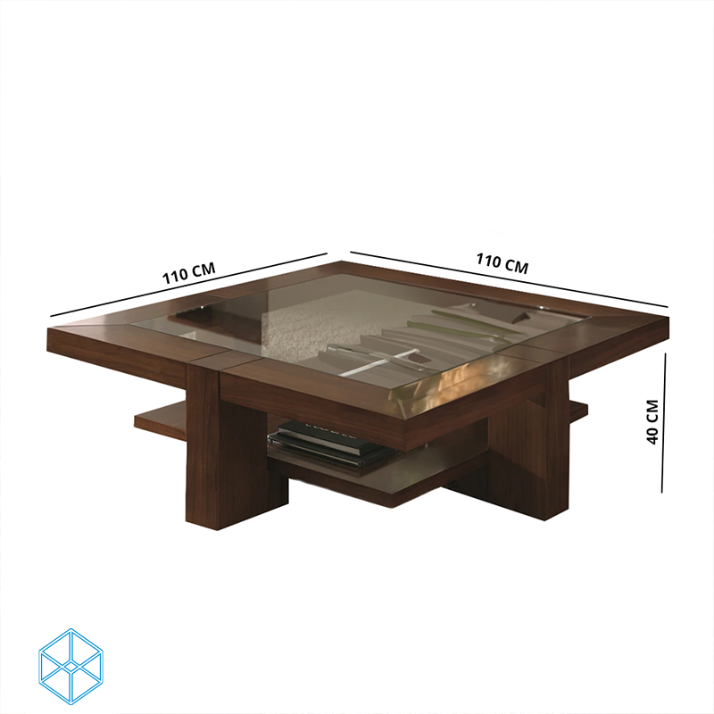 طاولة قهوة مربعة من الخشب تصميمها مودرن وأنيق. مقاساتها: ارتفاع 40 سم، عرض 110 / 70 سم، عمق 110 / 70 سم. مصنوعة من خشب طبيعي باللون البني، مزودة بتفاصيل زجاجية راقية. تتميز بجودة التصنيع والتشطيب الفاخر، مما يضيف لمسة أنيقة وعصرية لأي مساحة. مناسبة لتجمعات القهوة وتناول الوجبات وتزيين المكان بأناقة وفخامة.