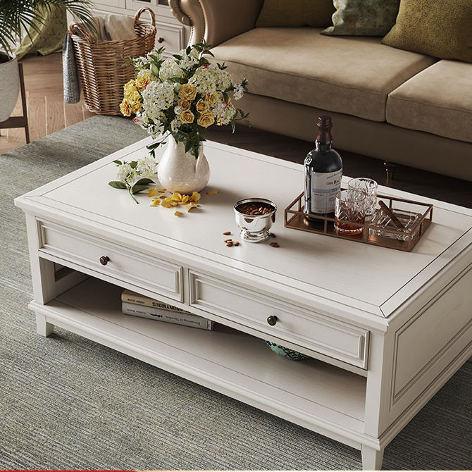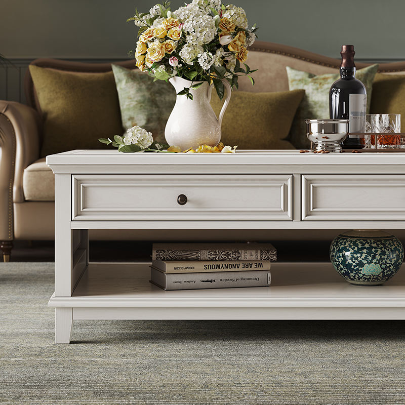 طاولة قهوة خشبي ابيض بتصميم كلاسيكي