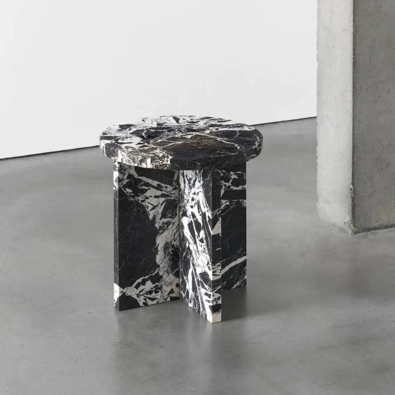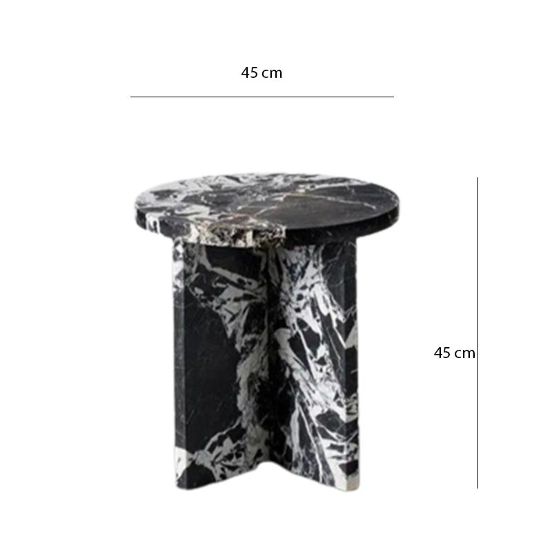 طاولة قهوة دائرية بسيطة باللونين الأسود والأبيض مصنوعة من خشب بديل رخام عالي الجودة، تتميز بتصميم عصري يضفي لمسة أنيقة لأي مساحة. فعالة وجميلة، مثالية لتحسين ديكور منزلك.