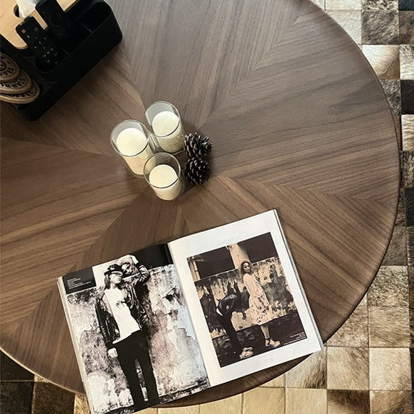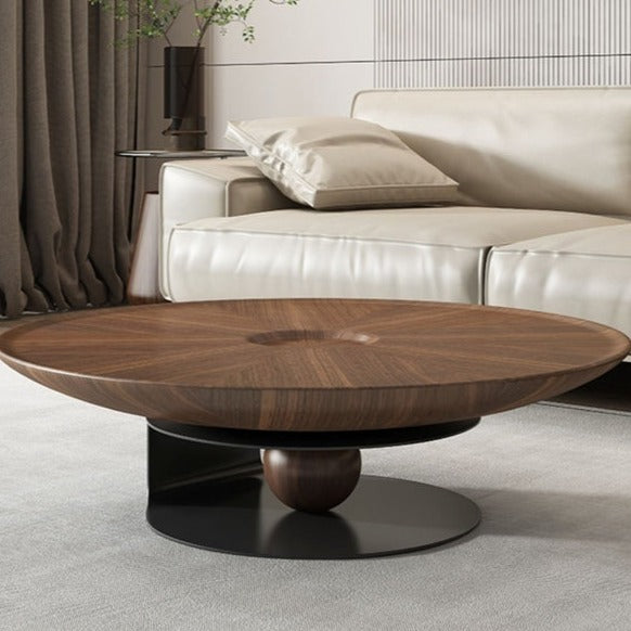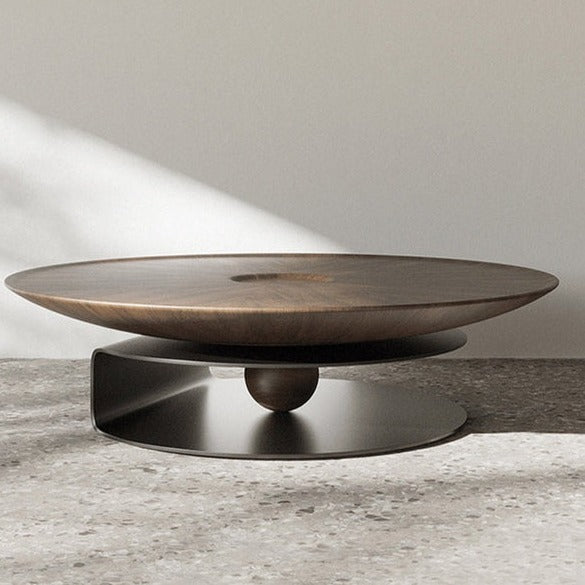 طاولة قهوة مستديرة فاخرة بتصميم مودرن، تجمع بين الأناقة والأداء. مصنوعة من خامات عالية الجودة، خشب طبيعي ومعدن، تمنحك جمالية متميزة واستخداماً عملياً.