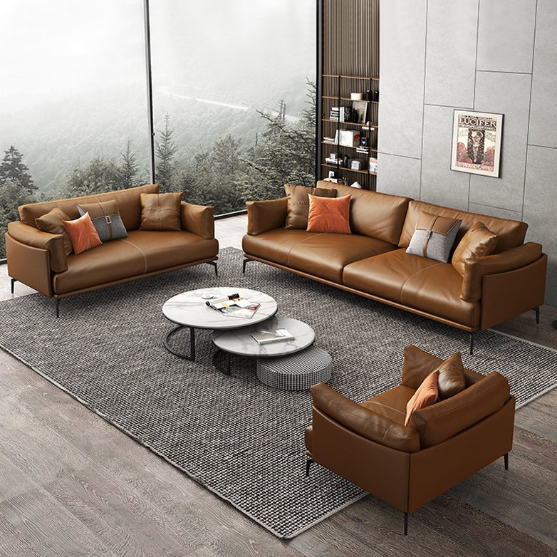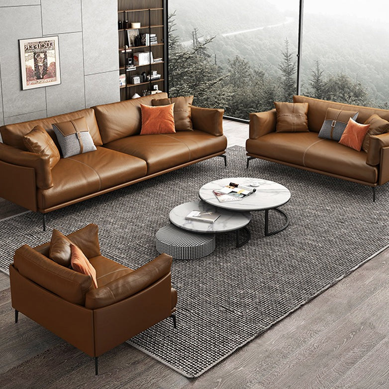 طقم كنب جلدي باللون بني