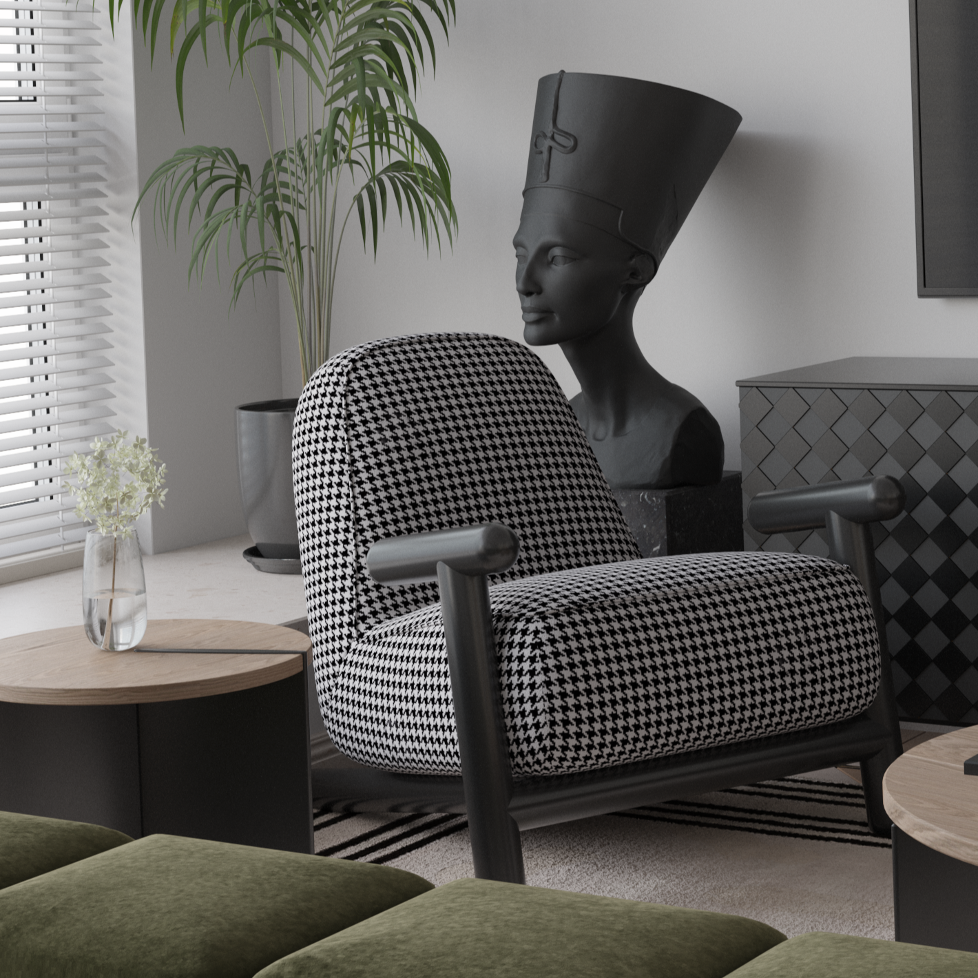 كرسي استرخاء بتصميم أنيق يجمع بين الراحة والفخامة، مصنوع من هيكل ستاليستيل متين ومغطى بقماش عالي الجودة. يتميز بمقعد واسع ومسند ظهر مريح يوفران تجربة جلوس مريحة طوال اليوم. يأتي بلون أنيق يجمع بين الأسود والأبيض، مما يضفي لمسة عصرية على أي مساحة. مثالي لغرف المعيشة أو زوايا القراءة لمنحك لحظات من الاسترخاء التام.