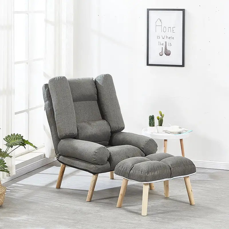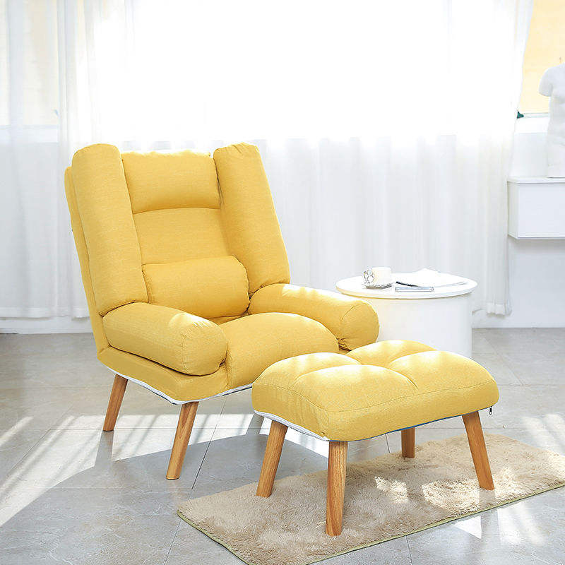 كرسي الاسترخاء العصري بألوان جذابة: أصفر، رمادي غامق، رمادي فاتح، أزرق، وردي. مصنوع من قماش كتان وخشب زان. تصميم مريح وأنيق، يتناسب مع أي مساحة.