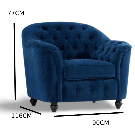 كرسي كنب كابتونيه باللون الأزرق هو قطعة أثاث أنيقة وفاخرة. يتميز بتصميم كابتونيه الكلاسيكي الذي يضفي لمسة من الأناقة والفخامة على أي مساحة. يتميز بأبعاد مريحة، حيث يبلغ عرضه 90 سم وعمقه 116 سم وارتفاعه 77 سم. صُنع من خشب الزان المتين والعالي الجودة، مما يضمن استدامته وقوته. يتميز المقعد بتنجيد مخملي ناعم وفاخر، مما يوفر أقصى درجات الراحة واللمسة الفاخرة. يجمع هذا الكرسي الكنب كابتونيه بين الأصالة والعصرية، مما يجعله خيارًا رائعًا لأي منزل يسعى لإضفاء لمسة من الفخامة والأناقة.