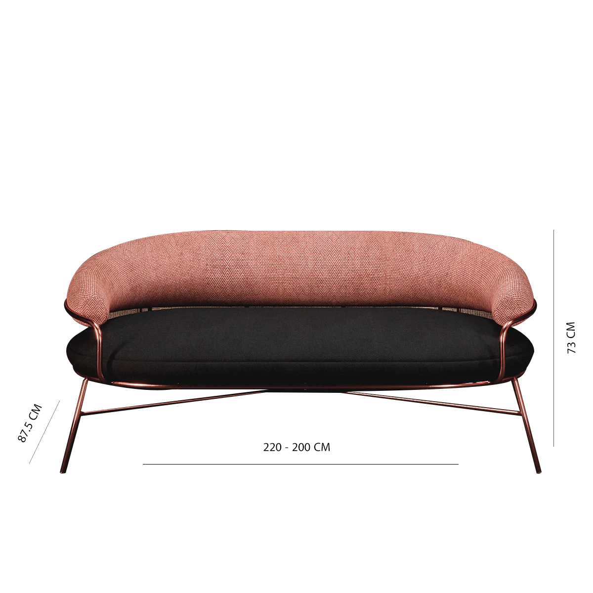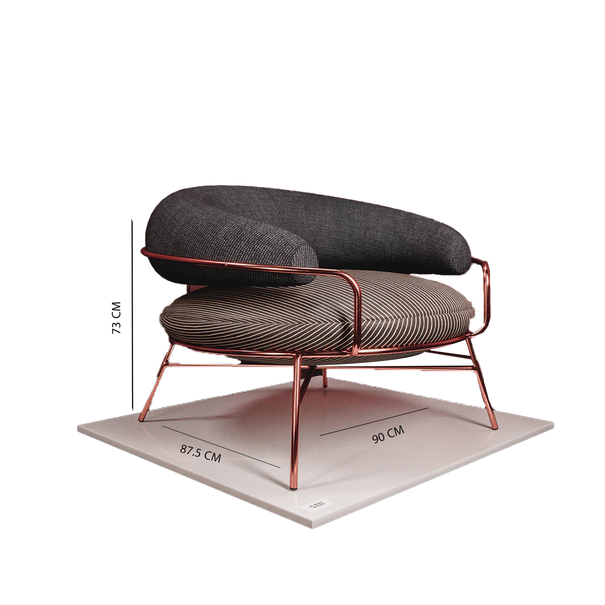 كرسي معدني بتصميم دائري أنيق يجمع بين العملية والجمال. يتوفر بألوان راقية تشمل الرمادي مع الأبيض والأسود، أو الطوبي مع الأسود، مما يضفي لمسة عصرية على أي مساحة. مصمم بمقاسات مرنة تتراوح بين عرض 90 سم و220 سم، مع عمق 87.5 سم وارتفاع 73 سم. مصنوع من ستاليستيل قوي وقماش عالي الجودة لضمان المتانة والراحة، وهو الخيار المثالي لإضافة لمسة فنية إلى ديكورك.