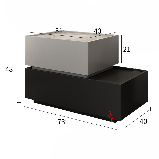 المقاس : العمق 40 سم * العرض 73 سم * الارتفاع 48 سم