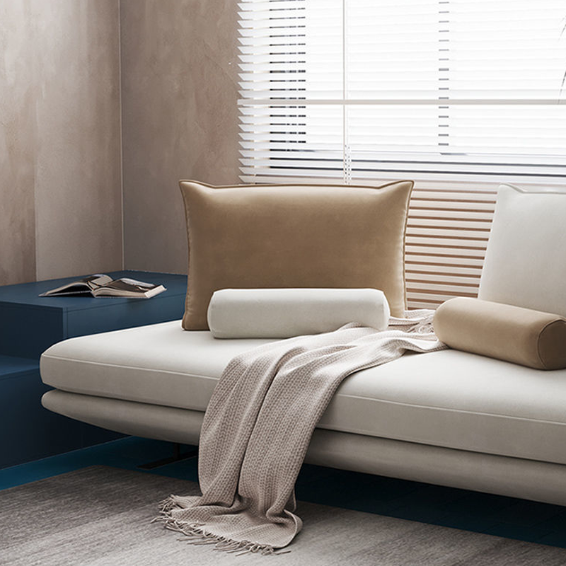 كنبة الاسترخاء الثنائية باللون الأبيض توفر راحة فائقة. مصنوعة من قماش الكتان عالي الجودة وهي داعمة بخشب الزان والكونتر. تصميم عصري بأبعاد مثالية تجمع بين الأناقة والراحة.