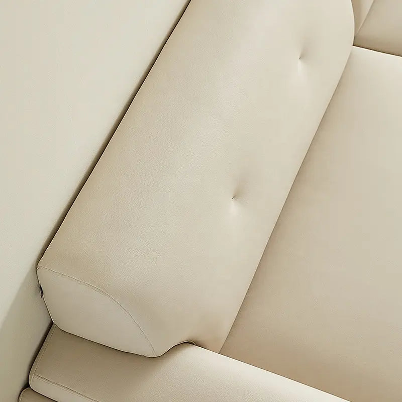 أريكة ثنائية أنيقة من الجلد الأبيض، مصنوعة من خشب الزان المتين، تتميز بتصميم عصري يضفي لمسة من الفخامة والراحة إلى أي مساحة معيشة.