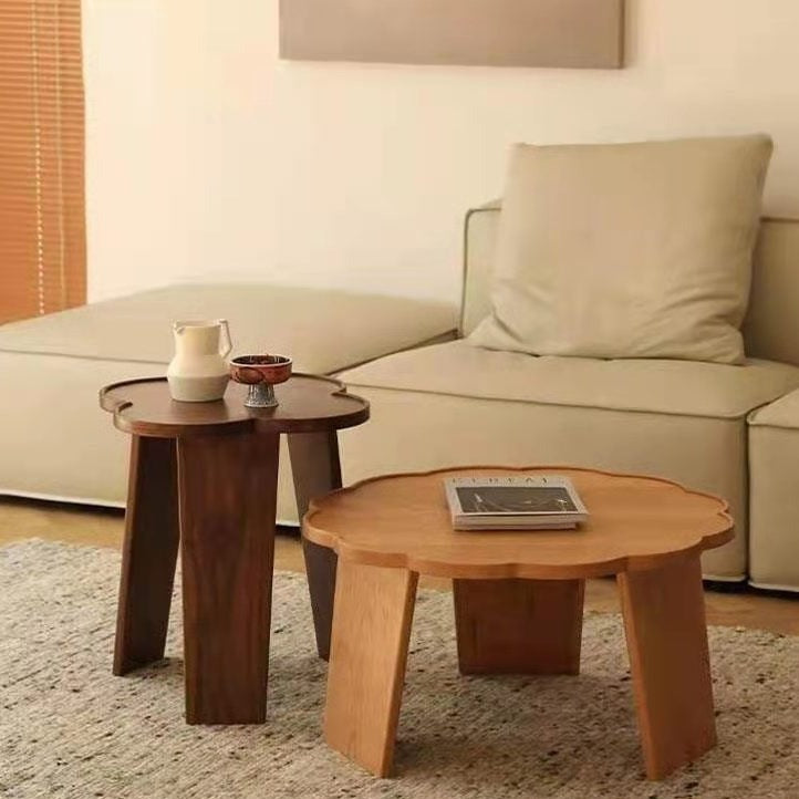 طاولة قهوة مزدوجة بتصميم مستوحى من الطراز الياباني البسيط والأنيق، تضيف لمسة دافئة وطبيعية إلى ديكور غرفة المعيشة. تتميز بتدرجات اللون الخشبي والبني، وصنعت بالكامل من خشب الزان المعروف بجودته العالية ومتانته. تتكون من طاولتين دائريتين بارتفاعين مختلفين، مما يمنح مرونة في الاستخدام وتناسق بصري جذاب في المساحة.