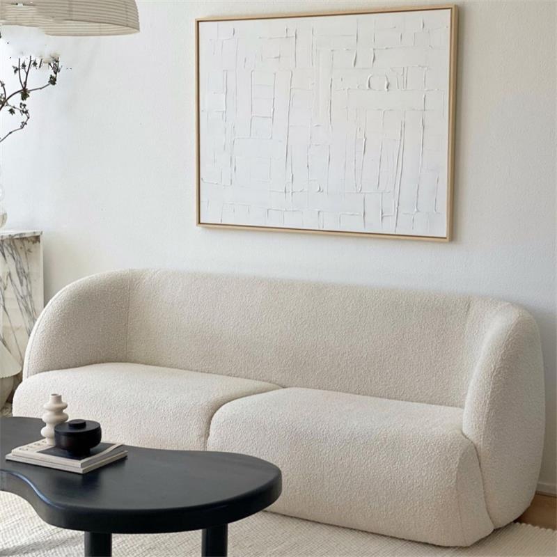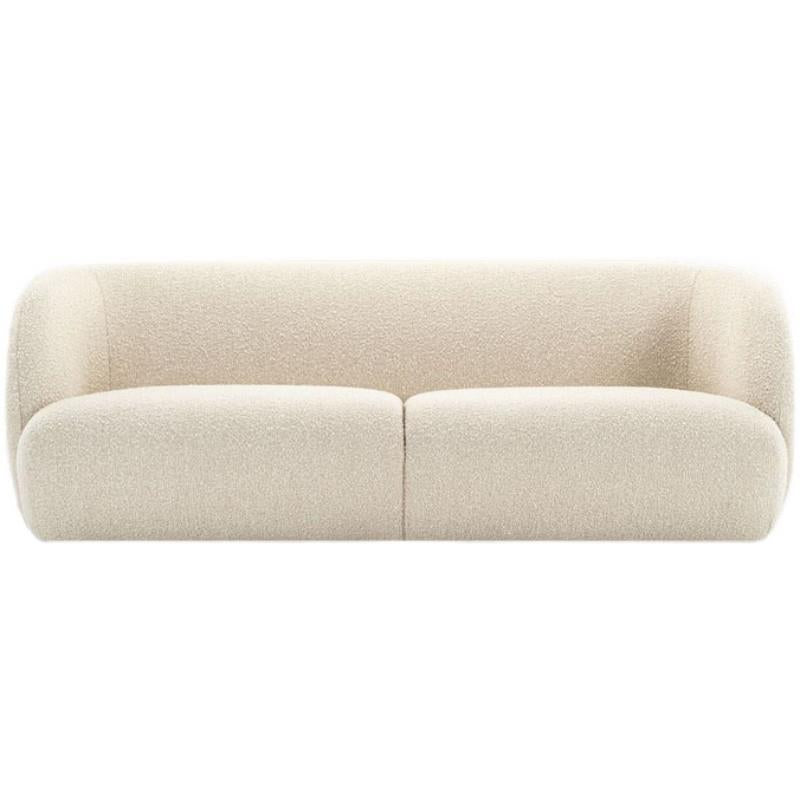 كنبة عصرية بتصميم متميز وجودة عالية، مصنوعة من قماش بوكليه بلون أبيض داكن، مدعومة بهيكل من خشب الزان. توفر راحة فائقة بأبعاد مثالية منتج متميز يجمع بين الأناقة والراحة، مثالي لتحسين جمالية المساحات بأسلوب عصري واستخدام فعّال.