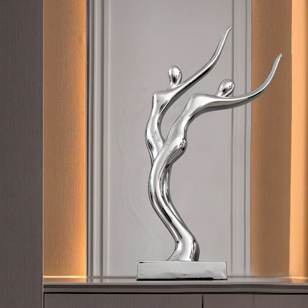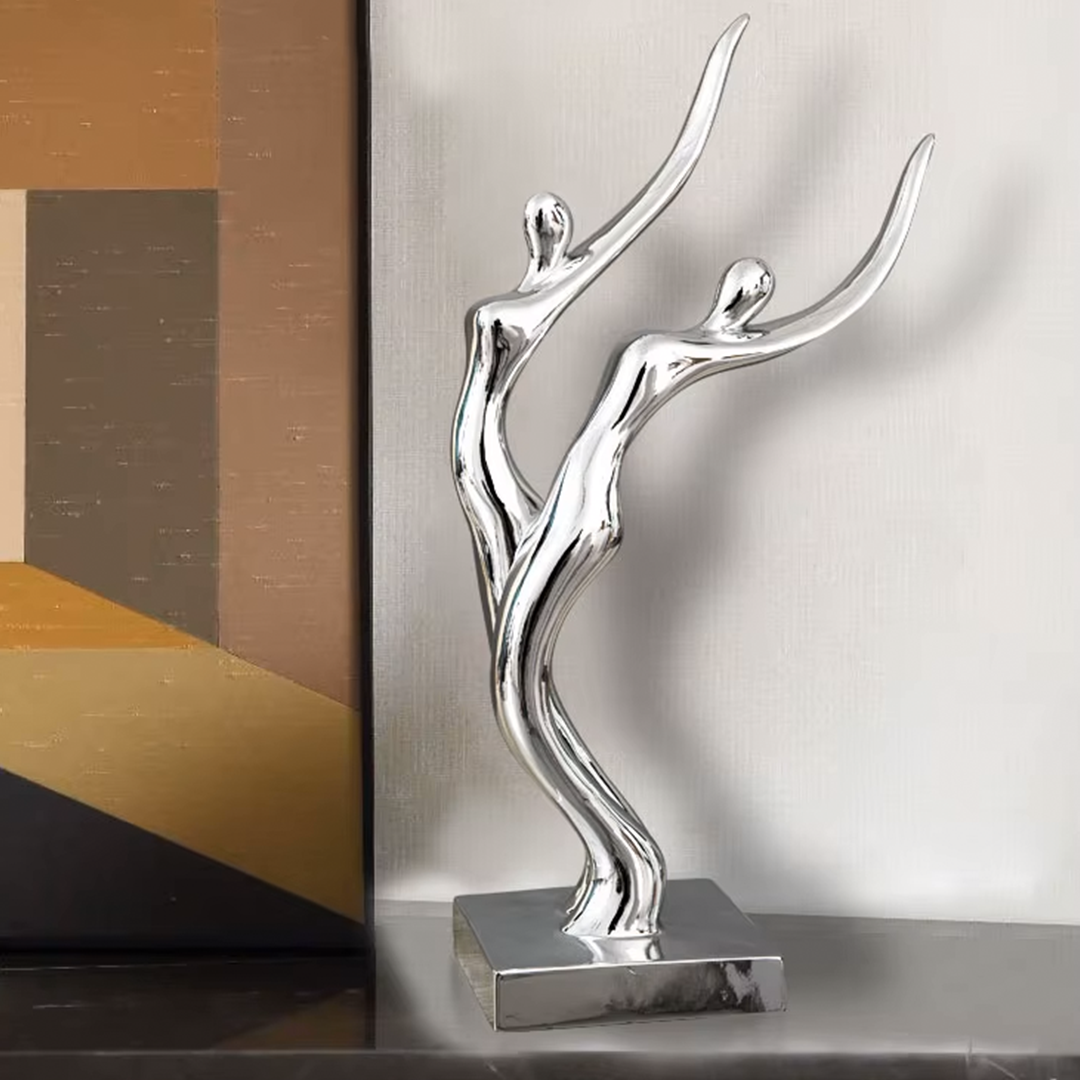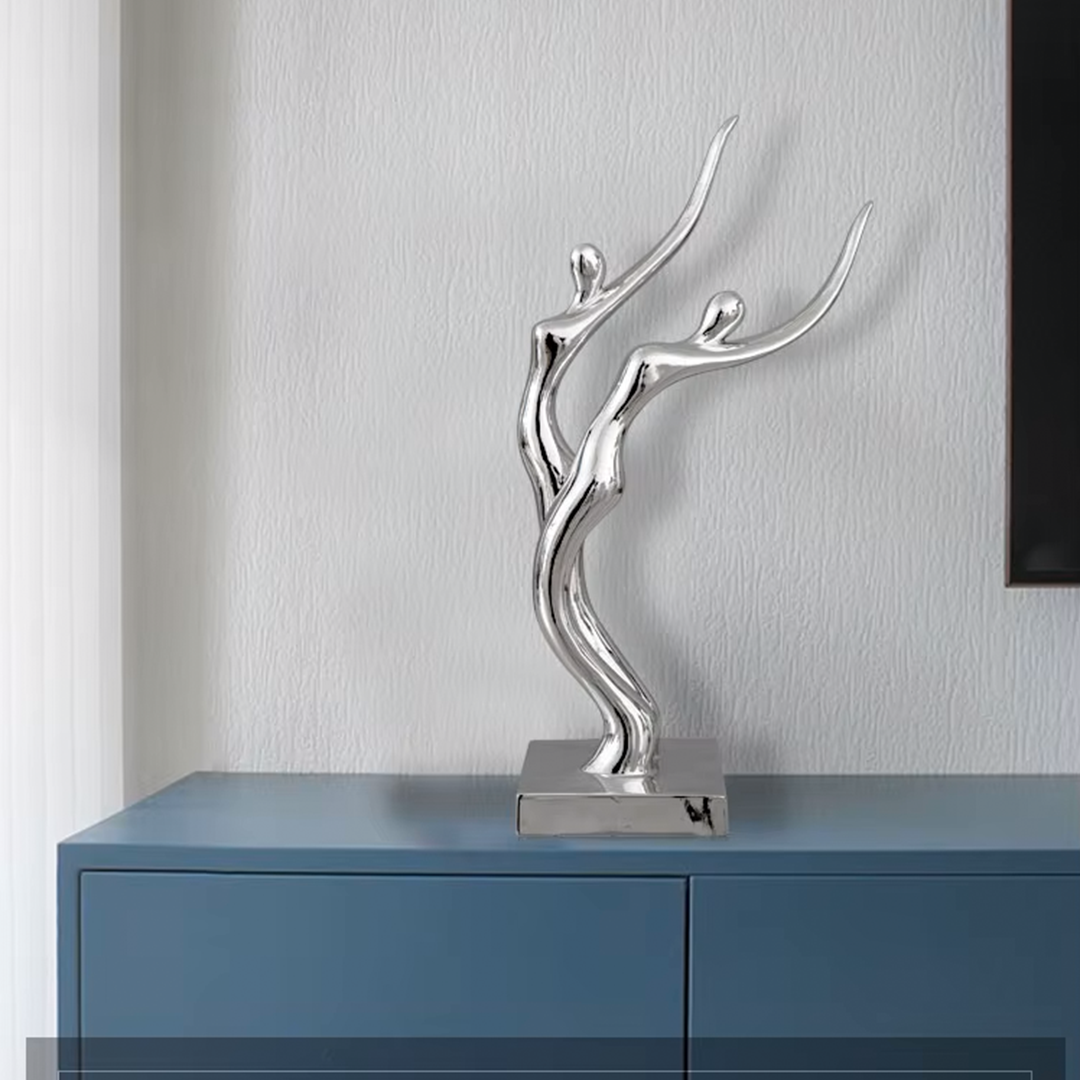تمثال منحوت على شكل إنسان من الفضة، يتميز بتفاصيل دقيقة وتصميم فني رائع. يبلغ ارتفاعه 40 سم، مما يجعله قطعة فنية بارزة تزين أي مساحة. الخامة الفاخرة المصنوعة من المعدن تضفي عليه مظهراً عصريًا ومترفًا، بينما اللون الفضي يضيف لمسة من الأناقة والتميز. هذا التمثال هو إضافة مثالية لجعل أي ديكور يبدو أكثر فخامة وجمالًا.